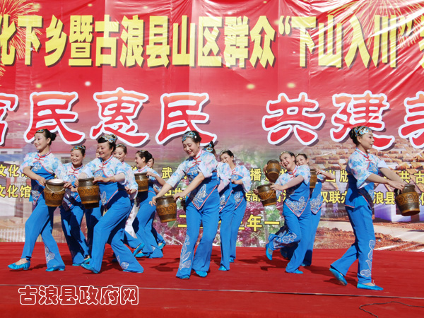 1月12至13日,省文化馆送文化下乡暨我县山区群众下山入川乔迁黄花滩新居系列活动在黄花滩生态移民暨扶贫开发“下山入川”工程感恩新村社区举行,庆贺搬迁群众乔迁之喜。